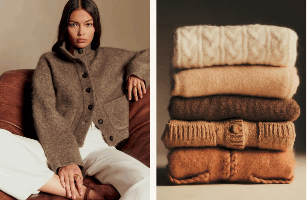 Choose knits, linen, bouclé, ribbed cotton, corduroy, and soft wool.